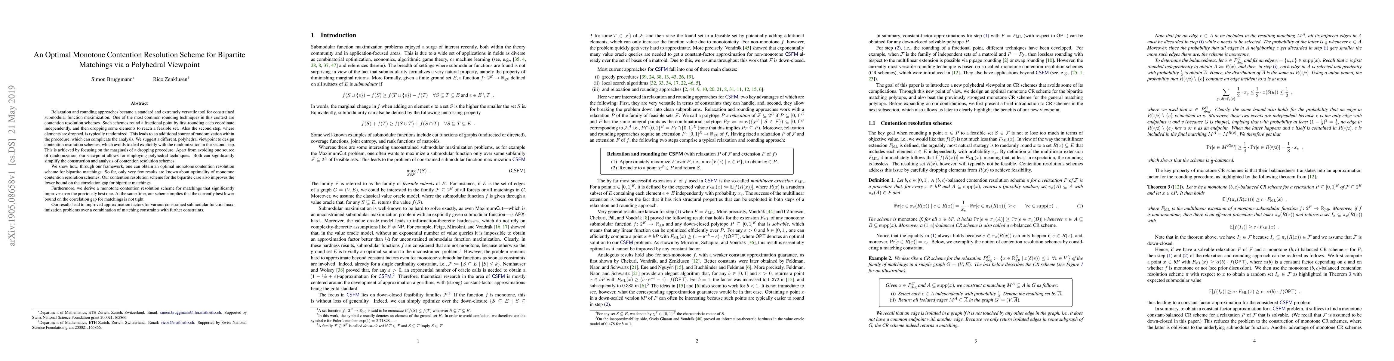 This paper proposes a novel polyhedral viewpoint for designing optimal monotone contention resolution schemes for bipartite matchings, avoiding explicit randomization and leveraging polyhedral techniques for simplification. The new scheme improves both the upper and lower bounds on correlation gaps for bipartite matchings and enhances approximation factors for constrained submodular function maximization.