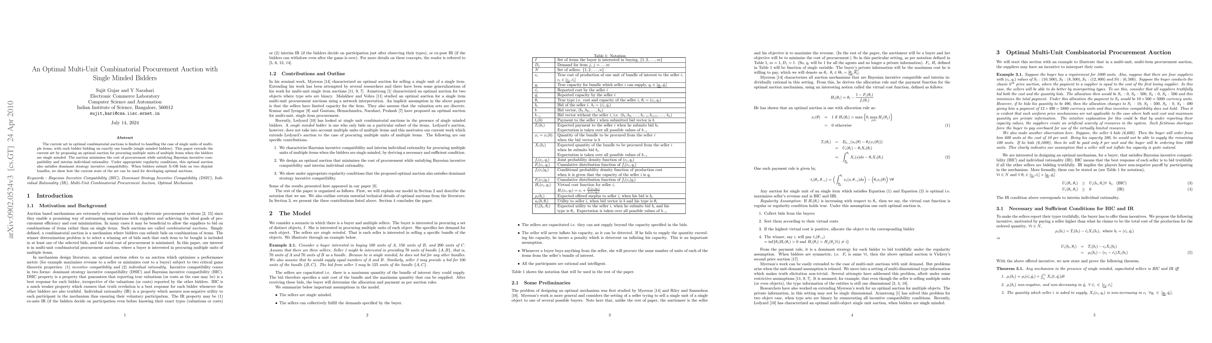 This paper proposes an optimal auction mechanism for procuring multiple units of multiple items from single-minded bidders, minimizing procurement costs while ensuring Bayesian incentive compatibility, interim individual rationality, and, under certain conditions, dominant strategy incentive compatibility.