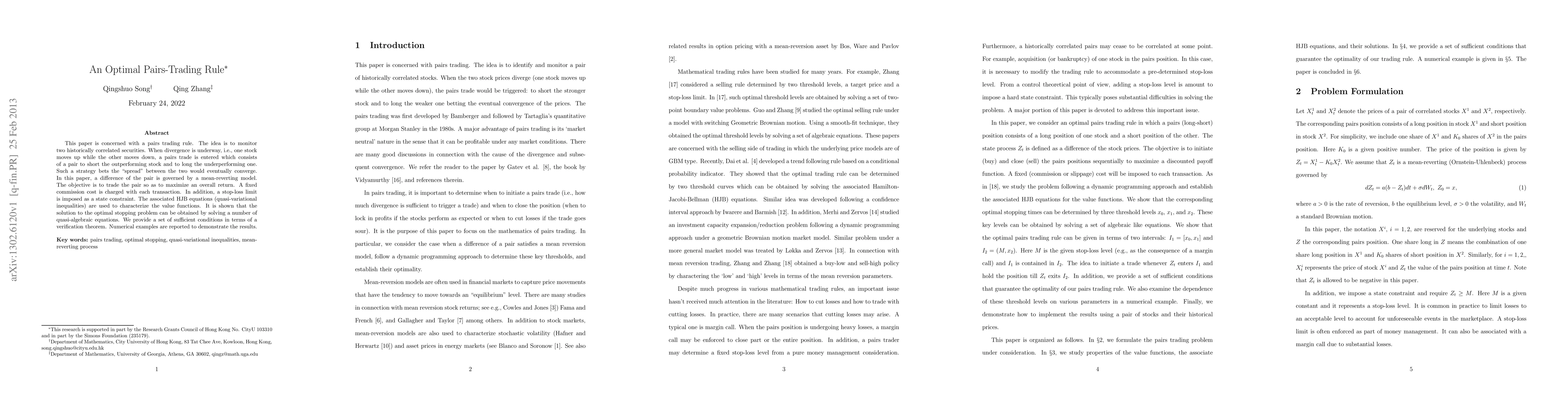 This paper develops an optimal pairs-trading rule for two historically correlated securities, employing a mean-reverting model to predict spread convergence. It maximizes returns considering transaction costs and stop-loss limits, with solutions derived from quasi-variational inequalities and verified through numerical examples.