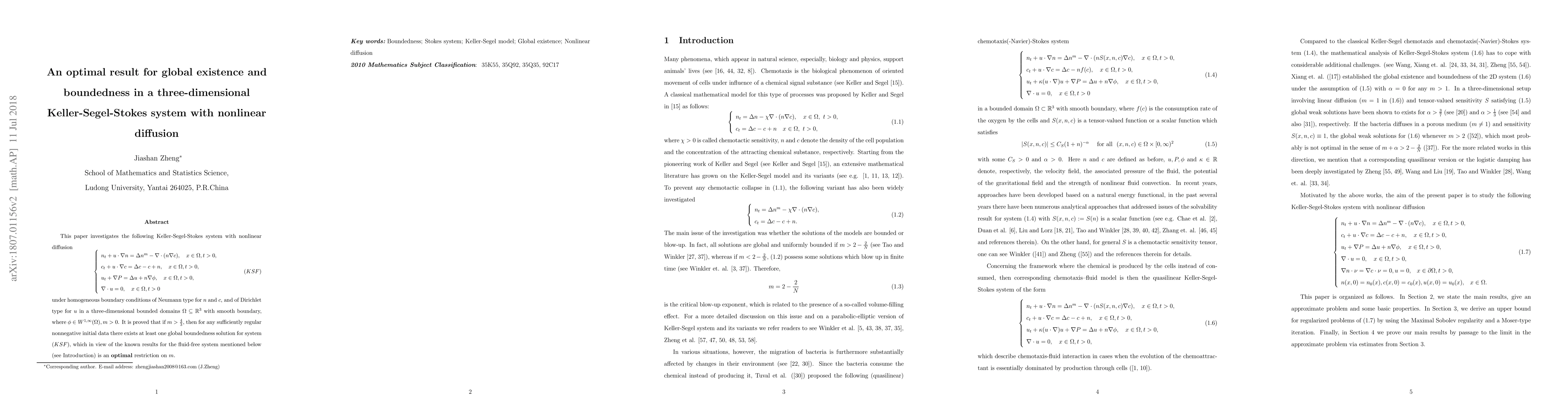 This paper proves global existence and boundedness for a three-dimensional Keller-Segel-Stokes system with nonlinear diffusion, showing that for $m>4/3$, solutions remain bounded globally, establishing an optimal condition on $m$ compared to fluid-free systems.