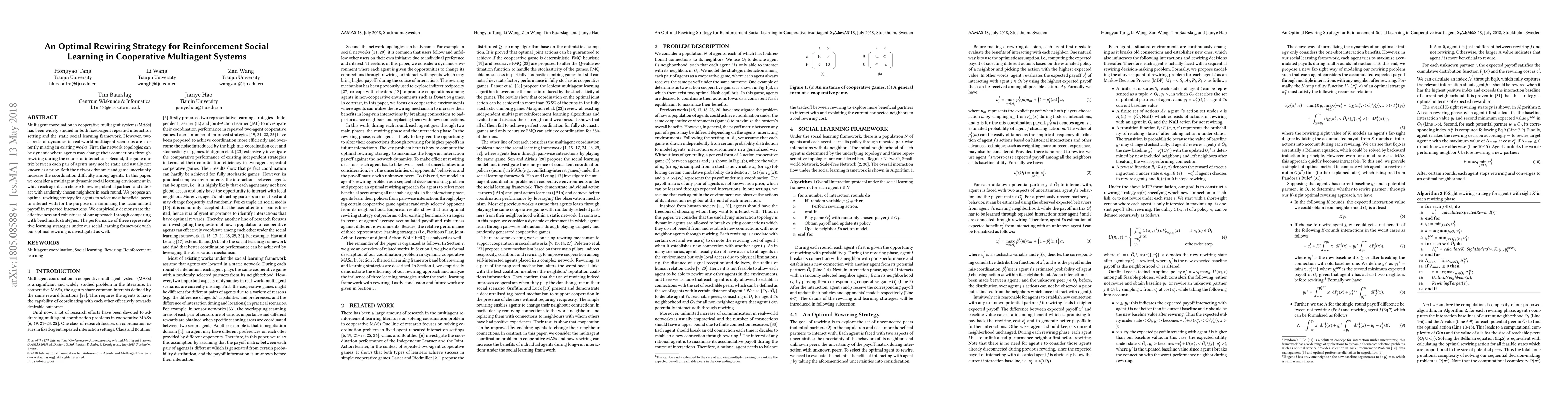 This paper proposes an optimal rewiring strategy for agents in cooperative multiagent systems to dynamically adjust their connections and maximize accumulated payoffs in uncertain environments. The study demonstrates the effectiveness of the strategy through empirical comparisons and investigates the performance of various learning approaches under the proposed framework.