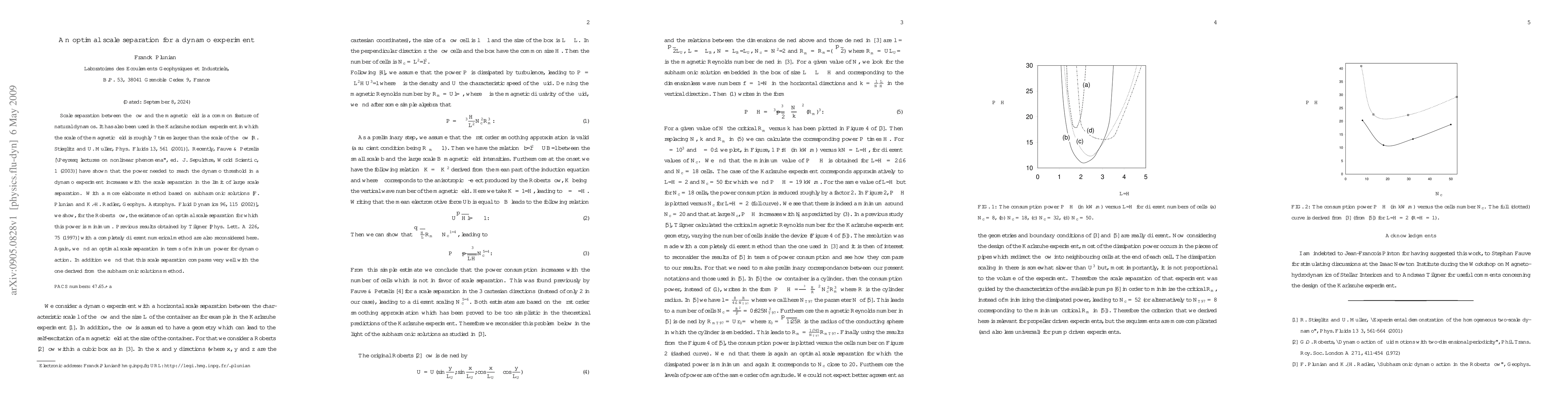 Scale separation between the flow and the magnetic field is a common feature of natural dynamos. It has also been used in the Karlsruhe sodium experiment in which the scale of the magnetic field is roughly 7 times larger than the scale of the flow [R. Stieglitz and U. M\"uller, Phys. Fluids 13, 561 (2001)]. Recently, Fauve & P\'etr\'elis ["Peyresq lectures on nonlinear phenomena", ed. J. Sepulchre, World Scientific, 1 (2003)] have shown that the power needed to reach the dynamo threshold in a dynamo experiment increases with the scale separation in the limit of large scale separation. With a more elaborate method based on subharmonic solutions [F. Plunian and K.-H. R\"adler, Geophys. Astrophys. Fluid Dynamics 96, 115 (2002)], we show, for the Roberts flow, the existence of an optimal scale separation for which this power is minimum. Previous results obtained by Tilgner [Phys. Lett. A 226, 75 (1997)] with a completely different numerical method are also reconsidered here. Again, we find an optimal scale separation in terms of minimum power for dynamo action. In addition we find that this scale separation compares very well with the one derived from the subharmonic solutions method.
