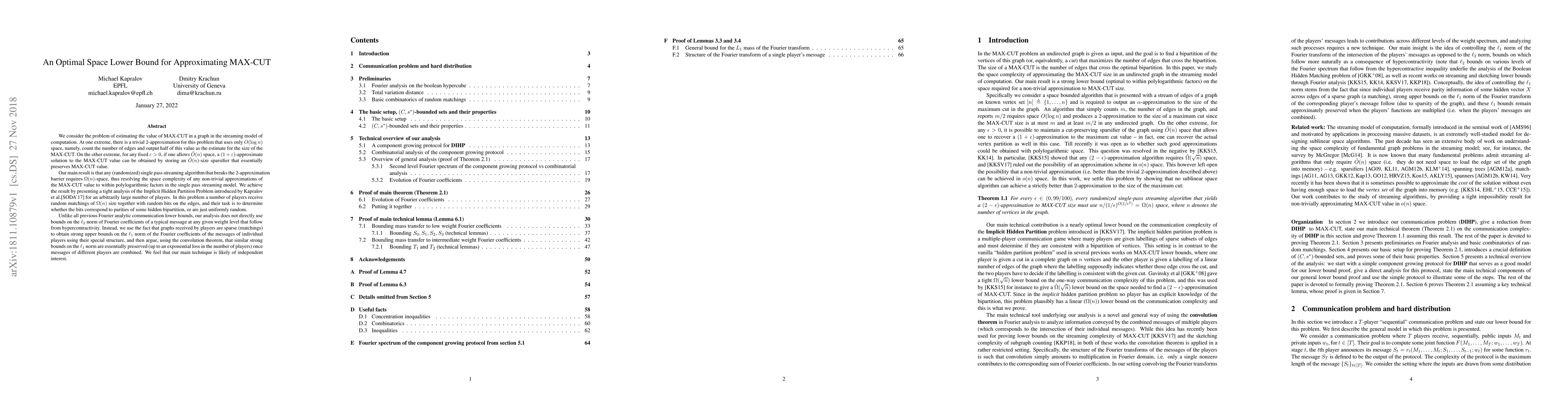 This paper establishes an optimal space lower bound for approximating MAX-CUT in the streaming model, proving that any algorithm surpassing a $2$-approximation requires $\Omega(n)$ space. The authors achieve this by analyzing the Implicit Hidden Partition Problem, leveraging the sparsity of graphs to derive strong bounds on the $\ell_1$ norm of Fourier coefficients, which are preserved when combining messages from multiple players.