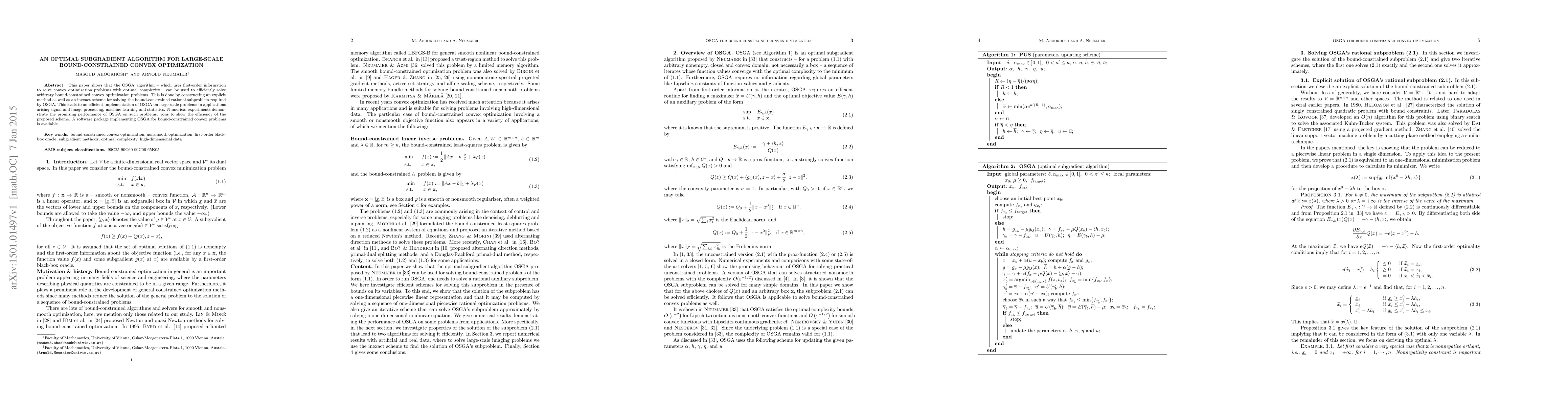 Researchers develop an efficient algorithm called OSGA to solve large-scale bound-constrained convex optimization problems with optimal complexity. Numerical experiments show promising performance on problems in signal processing, machine learning, and statistics.