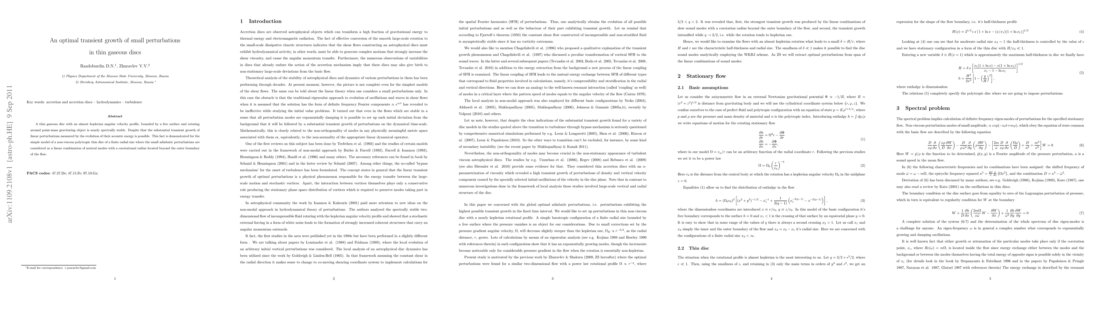 A thin gaseous disc is nearly spectrally stable despite transient growth of small perturbations, which can be controlled for adiabatic perturbations beyond the outer boundary.