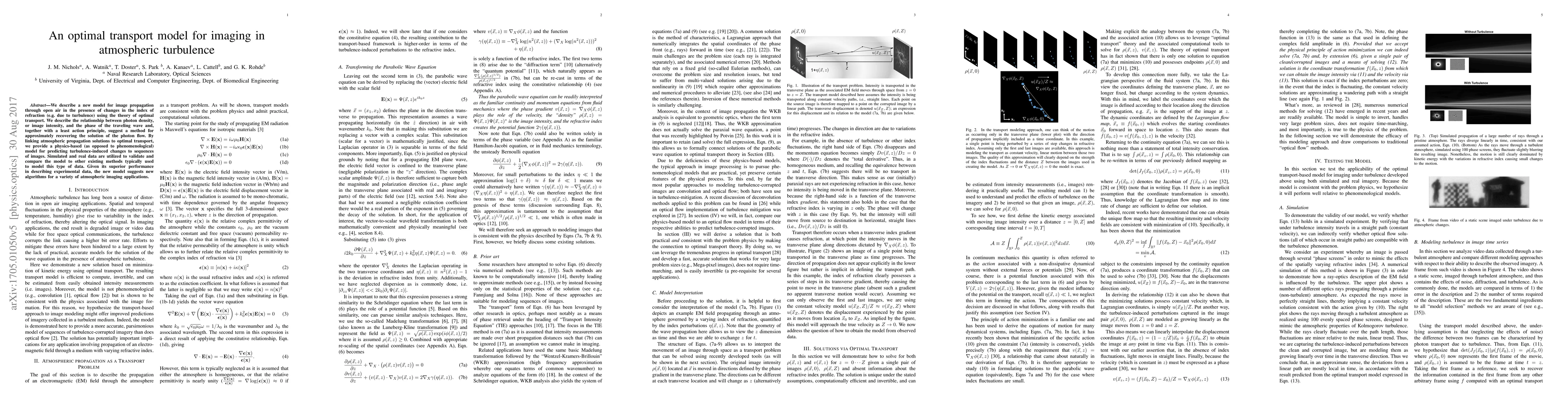 We describe a new model for image propagation through open air in the presence of changes in the index of refraction (e.g. due to turbulence) using the theory of optimal transport. We describe the relationship between photon density, or image intensity, and the phase of the traveling wave and, together with a least action principle, suggest a method for approximately recovering the solution of the photon flow. By linking atmospheric propagation solutions to optimal transport, we provide a physics-based (as opposed to phenomenological) model for predicting turbulence-induced changes to sequences of images. Simulated and real data are utilized to validate and compare the model to other existing methods typically used to model this type of data. Given its superior performance in describing experimental data, the new model suggests new algorithms for a variety of atmospheric imaging applications.
