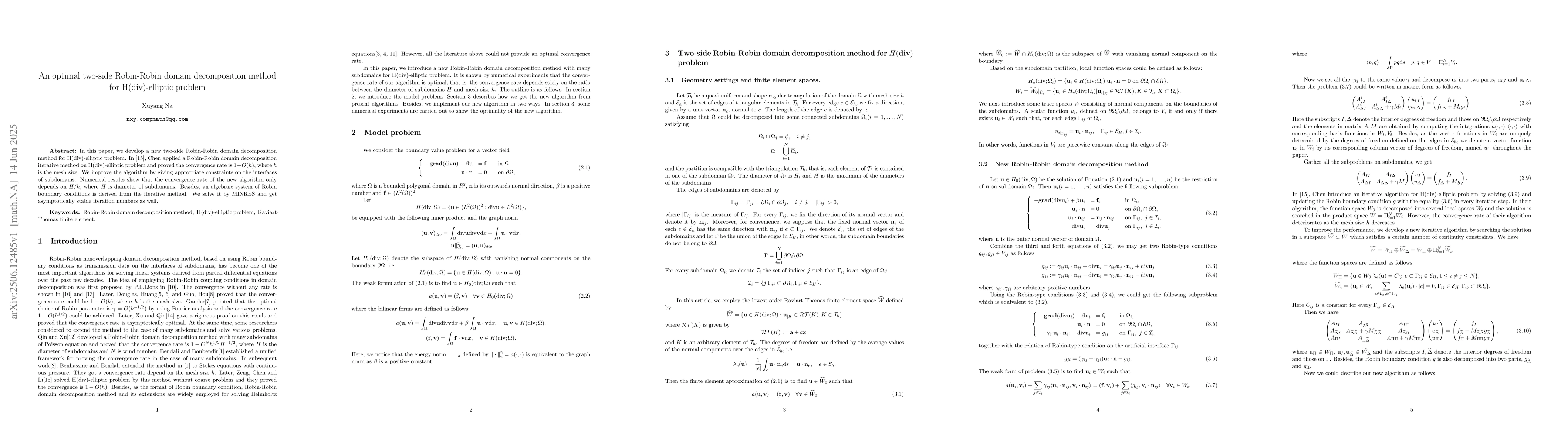 In this paper, we develop a new two-side Robin-Robin domain decomposition method for H(div)-elliptic problem. Numerical results show that the convergence rate of the new algorithm only depends on $H/h$, where $H$ is diameter of subdomains and $h$ is the mesh size. Besides, an algebraic system of Robin boundary conditions is derived from the iterative method. We solve it by MINRES and get asymptotically stable iteration numbers as well.