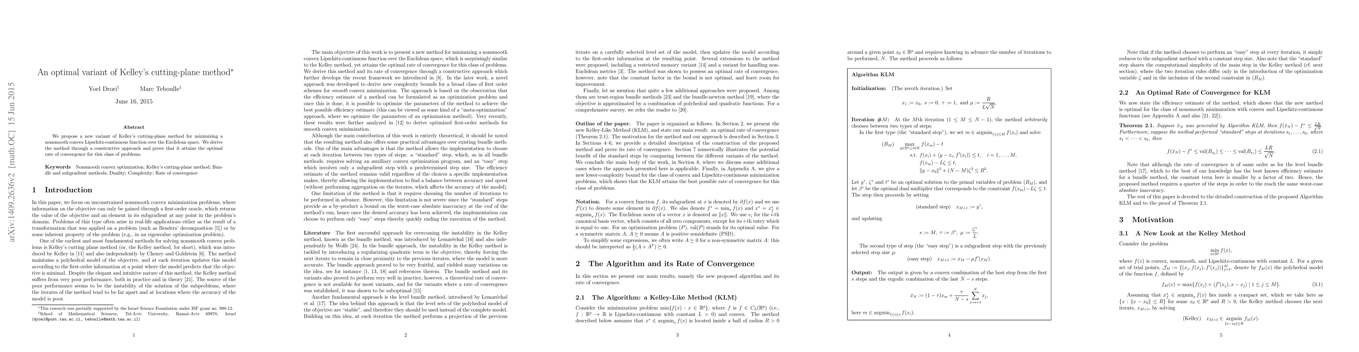 This paper proposes an improved variant of Kelley's cutting-plane method for minimizing nonsmooth convex Lipschitz-continuous functions, demonstrating optimal convergence rates through a constructive derivation.