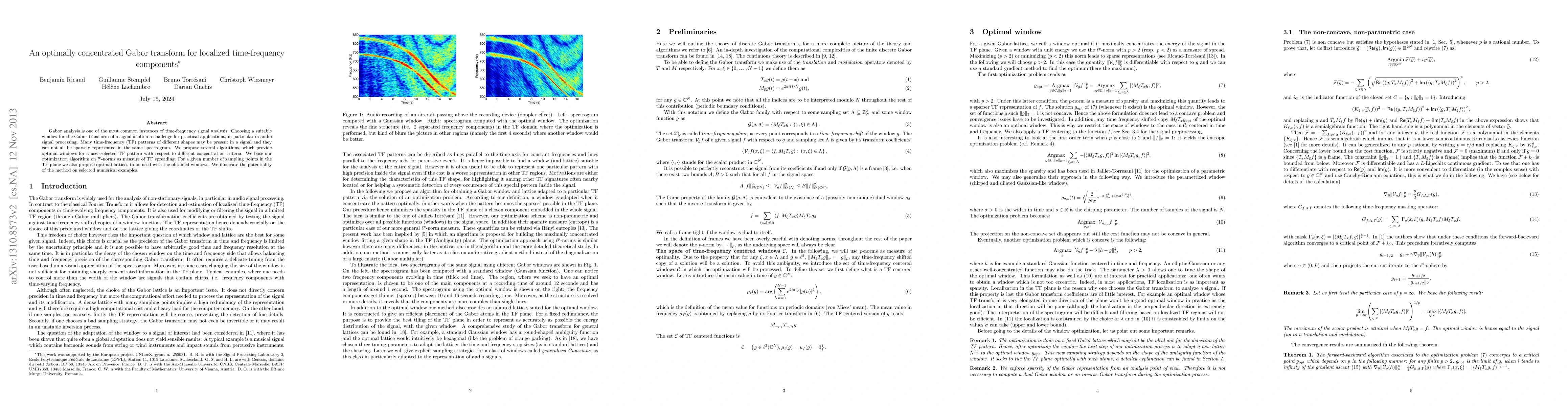 This paper presents algorithms for optimizing Gabor transform windows in time-frequency signal analysis, tailored for specific patterns. It introduces $l^p$-norms to measure TF spreading and proposes optimal lattices for a given sampling point count, supported by numerical examples.