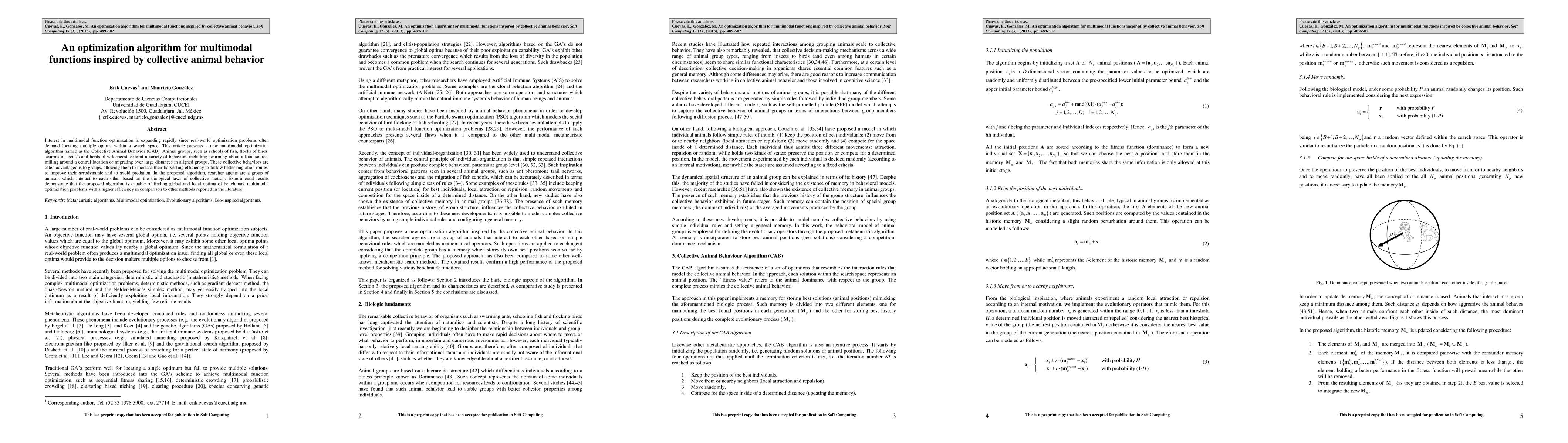This paper introduces a new multimodal optimization algorithm called Collective Animal Behavior (CAB), inspired by the collective motion of animals. The CAB algorithm uses searcher agents that mimic the biological laws of animal groups to efficiently locate multiple optima in complex optimization problems, outperforming other methods in benchmark tests.