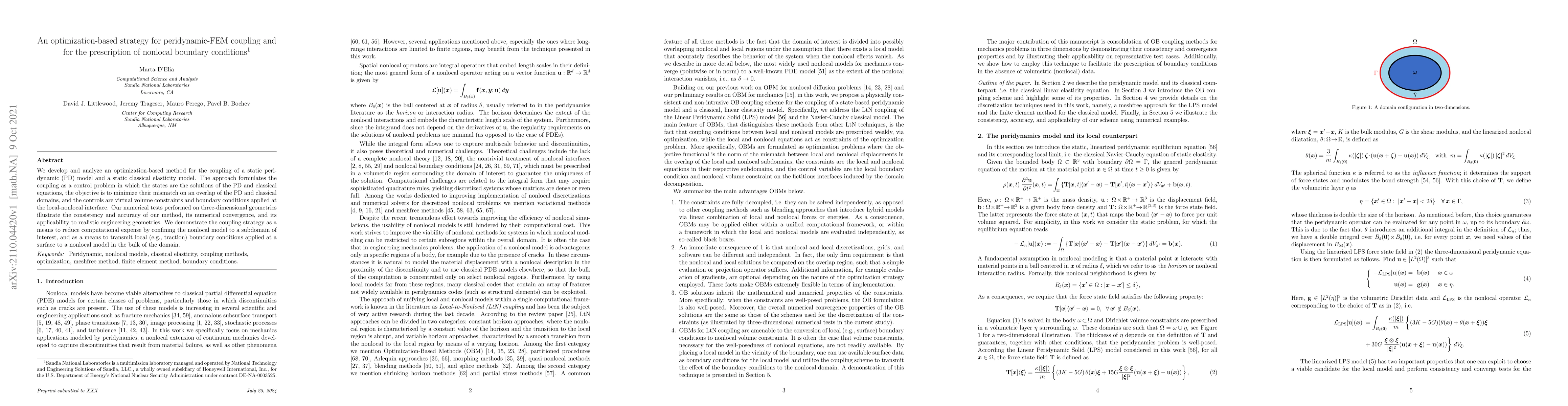 This paper presents an optimization-based method for coupling static peridynamic and classical elasticity models, minimizing their mismatch at the interface. The approach demonstrates numerical consistency, convergence, and efficiency in reducing computational costs by limiting the nonlocal model to relevant subdomains.