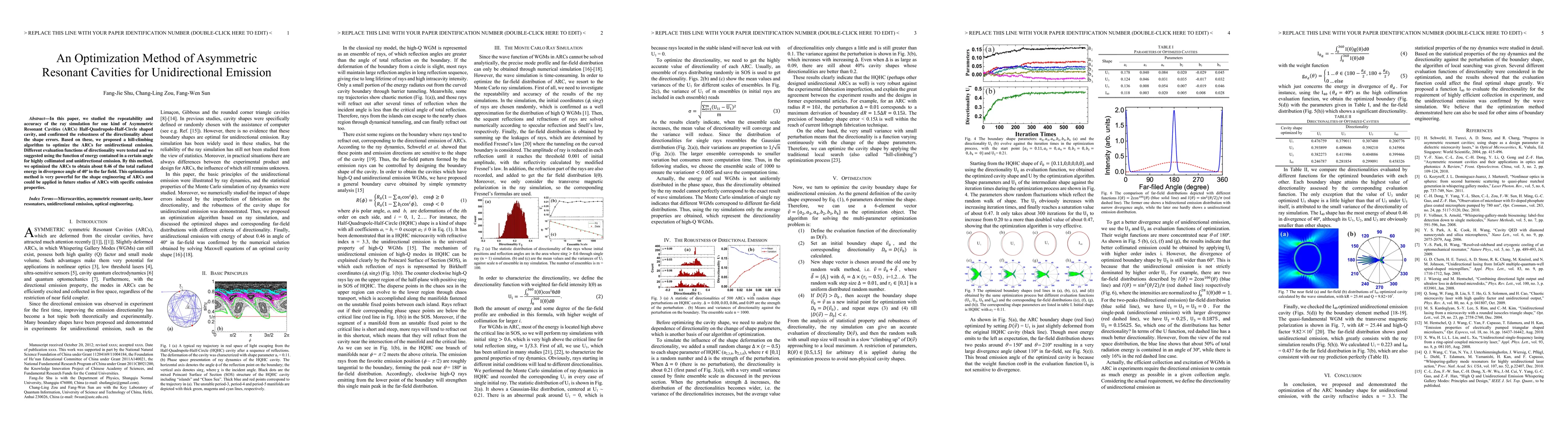 This paper presents an optimization method using a hill-climbing algorithm for Asymmetric Resonant Cavities (ARCs) to achieve unidirectional emission. The method successfully optimizes the ARCs, achieving 0.46 of total radiated energy within a 40-degree divergence angle, demonstrating its effectiveness in enhancing directional properties.