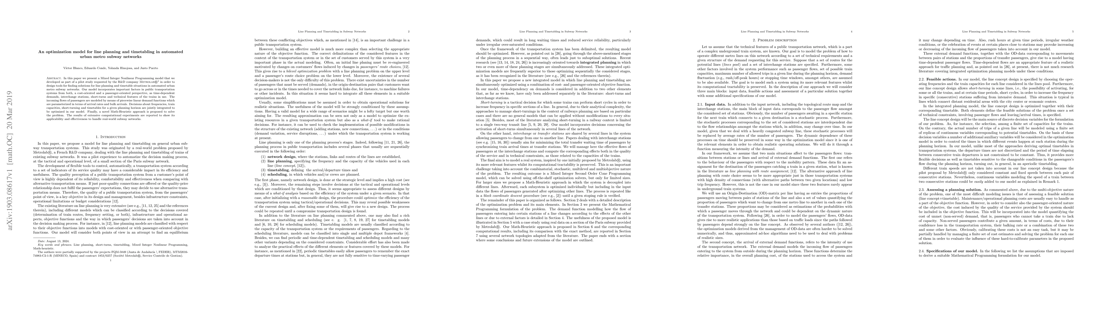 This paper presents a Mixed Integer Nonlinear Programming model for optimizing line planning and timetabling in automated urban metro subway networks. The model integrates cost and passenger-oriented factors, and employs a Math-Heuristic approach to solve the optimization problem, demonstrating its effectiveness through computational experiments.