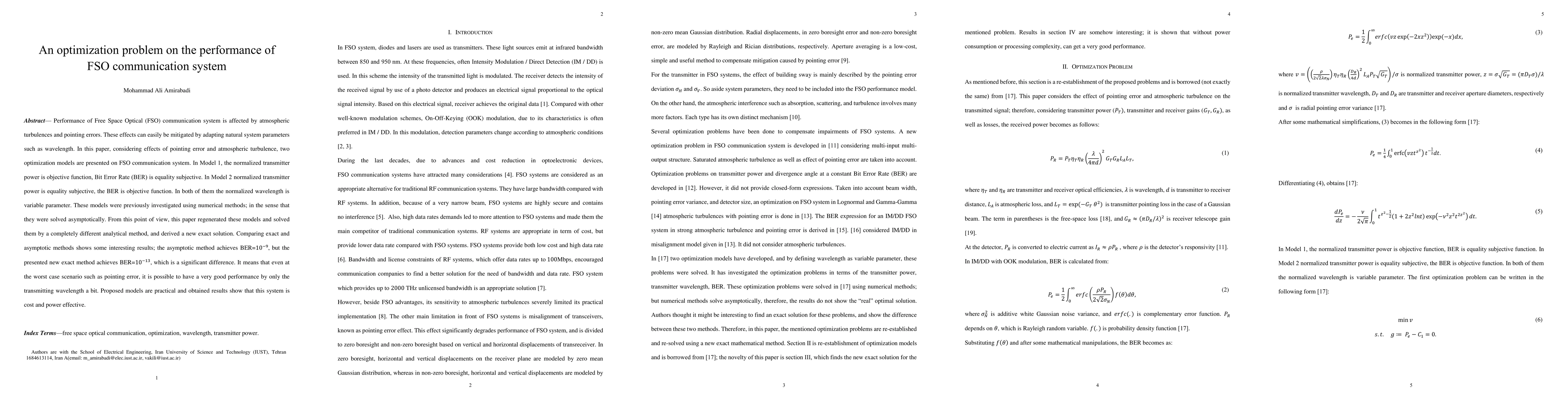Researchers developed optimization models to improve Free Space Optical communication system performance by adjusting wavelength, achieving better error rates than previous methods.
