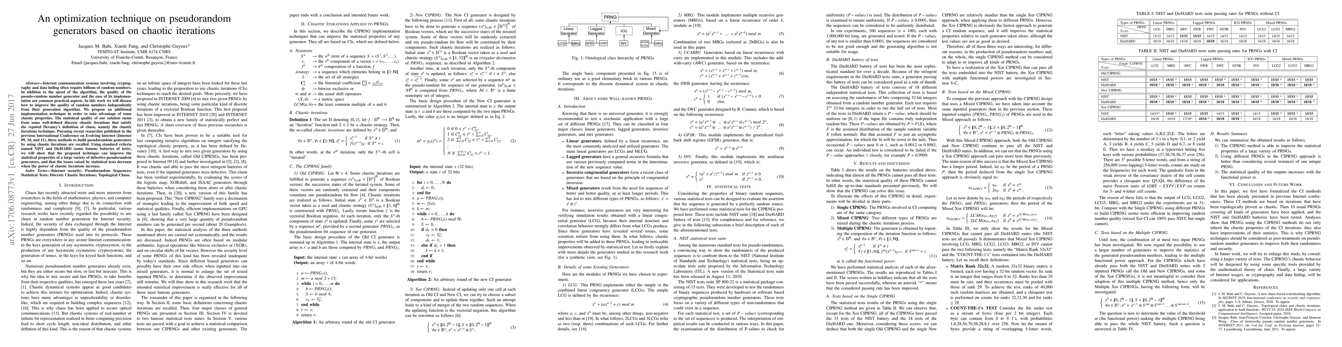 The paper formalizes chaotic iteration methods and applies them to 10 usual PRNGs, demonstrating that CIPRNG methods can improve the statistical properties of PRNGs and should be considered as post-treatment techniques for enhancing randomness and security.