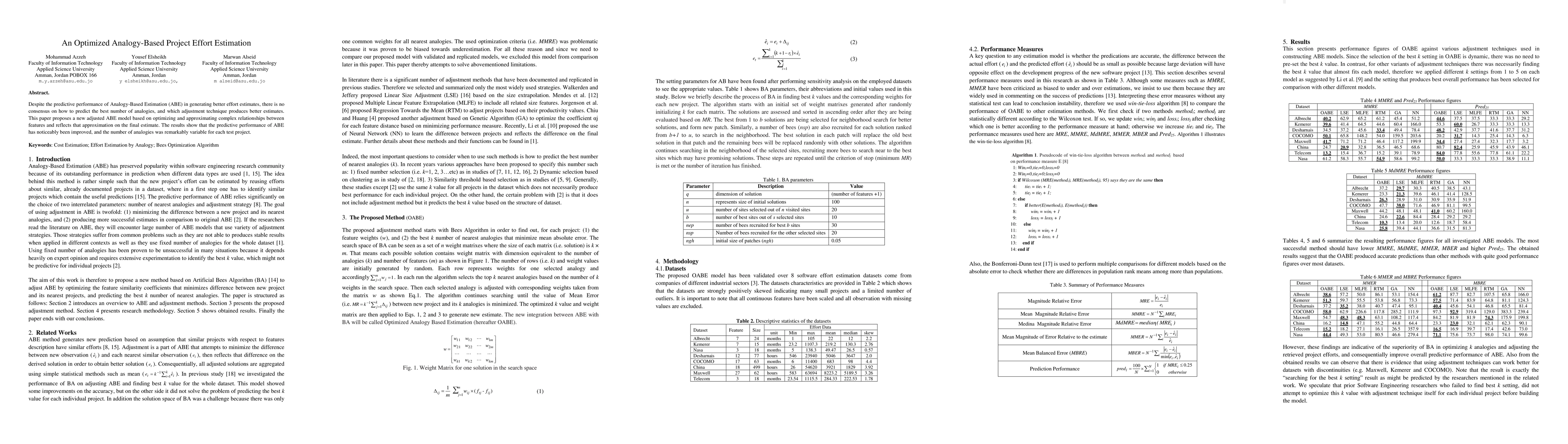 Despite the predictive performance of Analogy-Based Estimation (ABE) in generating better effort estimates, there is no consensus on how to predict the best number of analogies, and which adjustment technique produces better estimates. This paper proposes a new adjusted ABE model based on optimizing and approximating complex relationships between features and reflects that approximation on the final estimate. The results show that the predictive performance of ABE has noticeably been improved, and the number of analogies was remarkably variable for each test project.