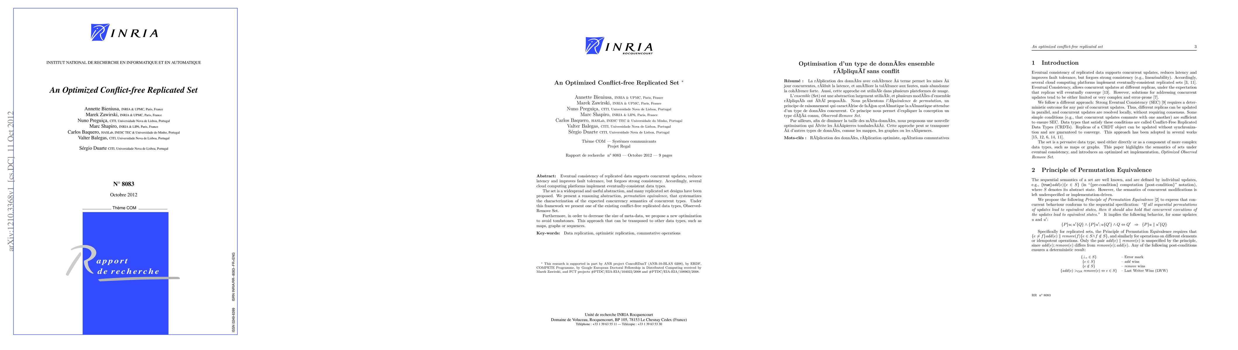 Eventual consistency of replicated data supports concurrent updates, reduces latency and improves fault tolerance, but forgoes strong consistency. Accordingly, several cloud computing platforms implement eventually-consistent data types. The set is a widespread and useful abstraction, and many replicated set designs have been proposed. We present a reasoning abstraction, permutation equivalence, that systematizes the characterization of the expected concurrency semantics of concurrent types. Under this framework we present one of the existing conflict-free replicated data types, Observed-Remove Set. Furthermore, in order to decrease the size of meta-data, we propose a new optimization to avoid tombstones. This approach that can be transposed to other data types, such as maps, graphs or sequences.