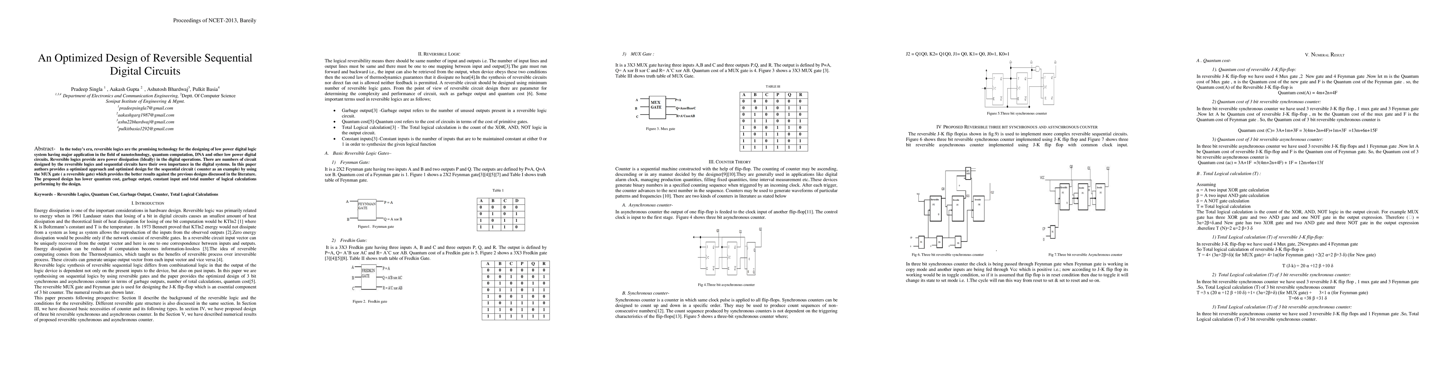 In the today's era, reversible logics are the promising technology for the designing of low power digital logic system having major application in the field of nanotechnology, quantum computation, DNA and other low power digital circuits. Reversible logics provide zero power dissipation (Ideally) in the digital operations. There are numbers of circuit designed by the reversible logics and sequential circuits have their own importance in the digital systems. In this paper authors provides a optimized approach and optimized design for the sequential circuit (counter as an example) by using the MUX gate (a reversible gate) which provides the better results against the previous designs discussed in the literature. The proposed design has lower quantum cost, garbage output, constant input and total number of logical calculations performing by the design.