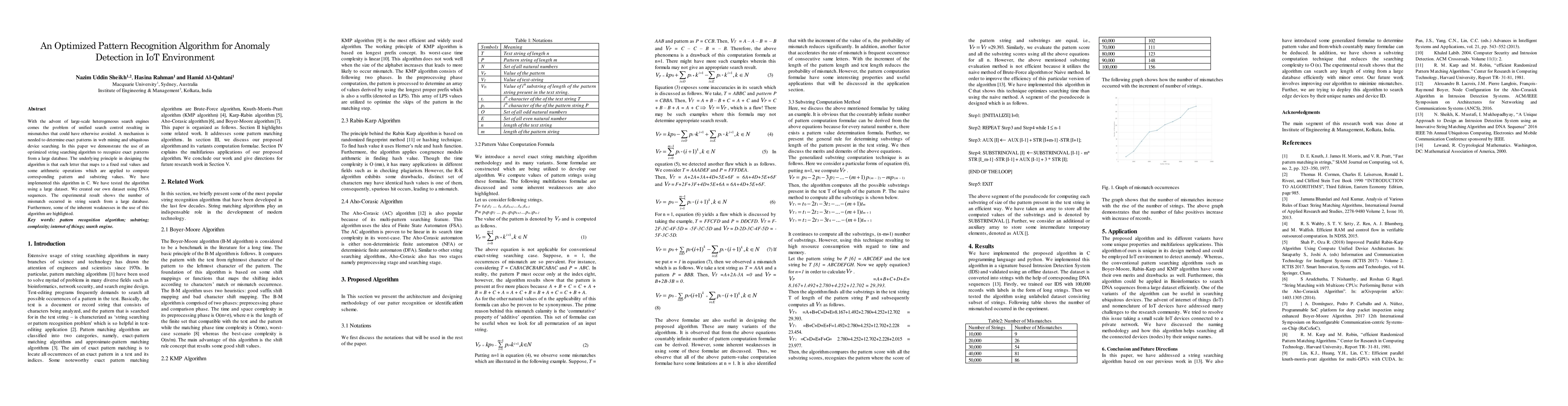 With the advent of large-scale heterogeneous search engines comes the problem of unified search control resulting in mismatches that could have otherwise avoided. A mechanism is needed to determine exact patterns in web mining and ubiquitous device searching. In this paper we demonstrate the use of an optimized string searching algorithm to recognize exact patterns from a large database. The underlying principle in designing the algorithm is that each letter that maps to a fixed real values and some arithmetic operations which are applied to compute corresponding pattern and substring values. We have implemented this algorithm in C. We have tested the algorithm using a large dataset. We created our own dataset using DNA sequences. The experimental result shows the number of mismatch occurred in string search from a large database. Furthermore, some of the inherent weaknesses in the use of this algorithm are highlighted.