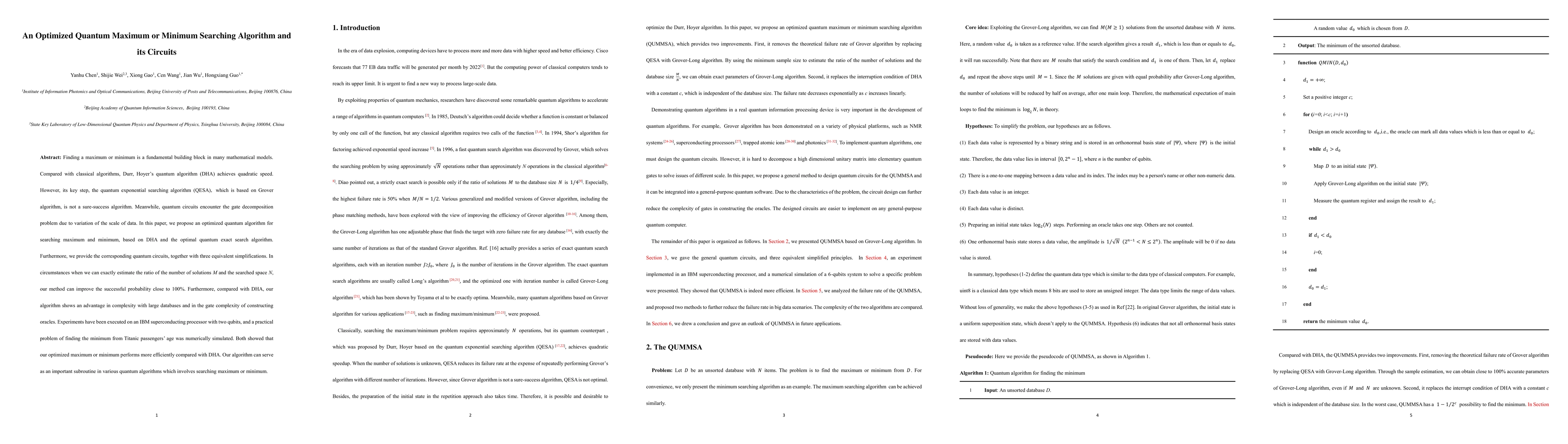 This paper proposes an optimized quantum algorithm for finding maximum or minimum values, improving upon Durr, Hoyer's algorithm by enhancing the success probability and reducing complexity. Experiments on an IBM processor demonstrated its efficiency over the original algorithm.