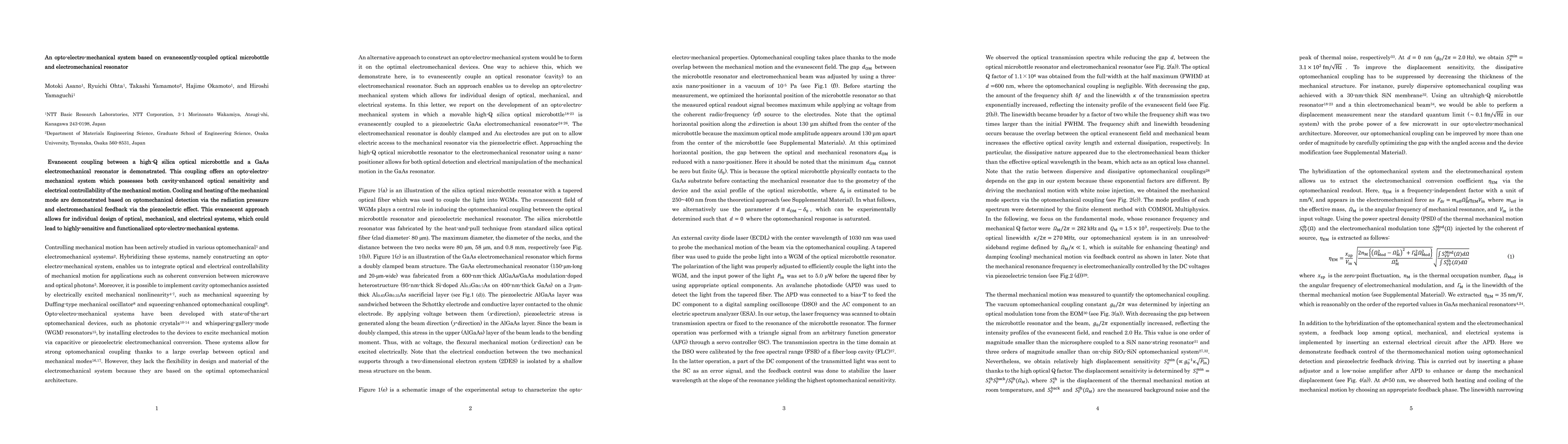 The paper introduces an innovative approach to opto-electro-mechanical systems by utilizing evanescent coupling between an optical microbottle resonator and a GaAs electromechanical resonator, enabling both optical sensitivity and electrical control of mechanical motion.