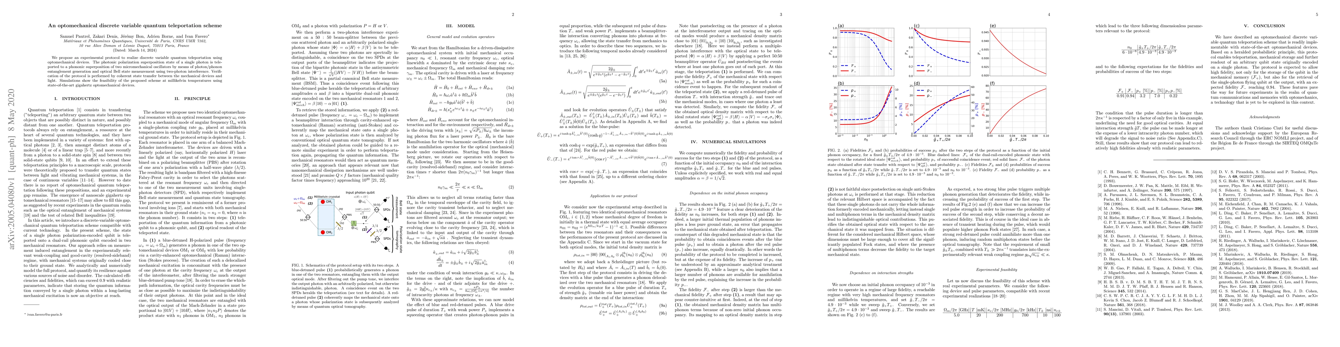 This paper proposes a protocol for discrete variable quantum teleportation using optomechanical devices, where a photonic polarization state is transferred to a phononic state in micromechanical oscillators via photon/phonon entanglement and optical Bell state measurement. Simulations indicate the feasibility of the scheme at millikelvin temperatures.