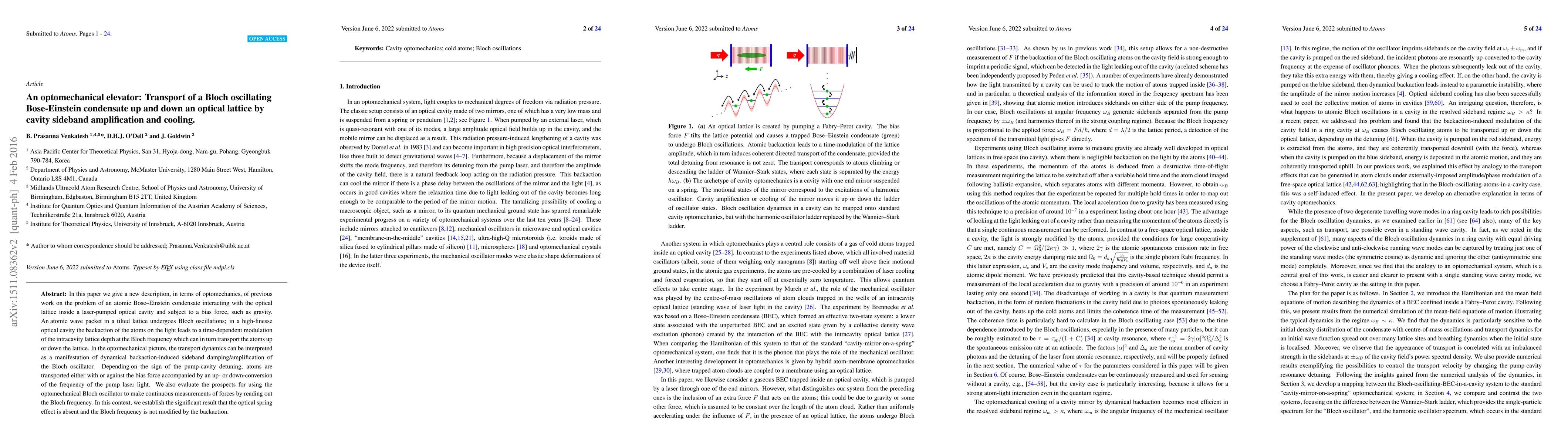 This paper investigates the optomechanical dynamics of a Bose-Einstein condensate in an optical lattice within a laser-pumped cavity, demonstrating transport of atoms up or down the lattice via Bloch oscillations modulated by cavity sideband amplification and cooling. The study reveals that the transport can occur with or against a bias force, and the Bloch frequency remains unaffected by backaction, suggesting potential for continuous force measurement.