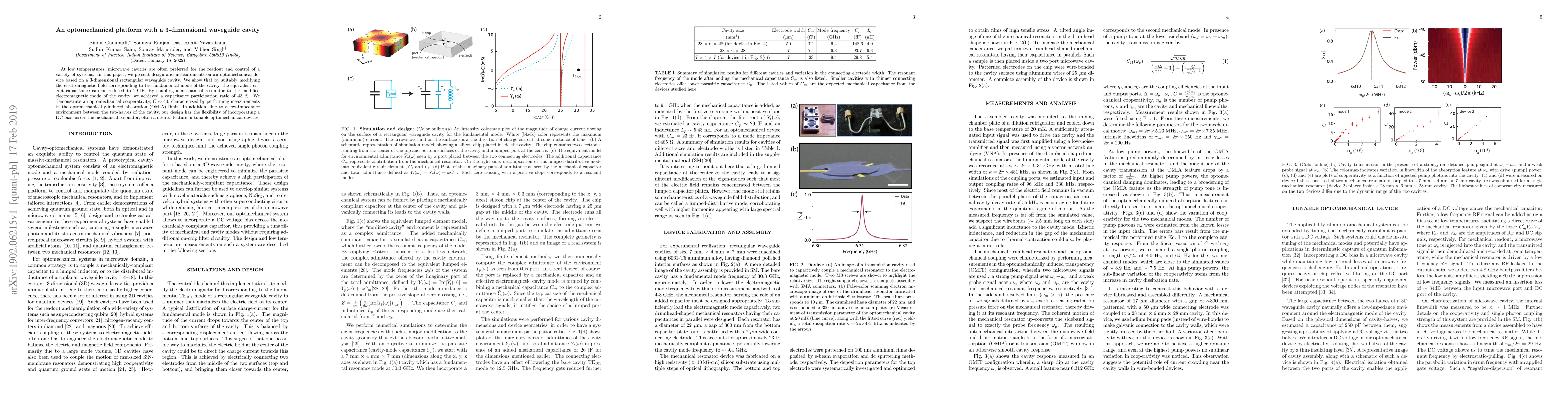 This paper details the design and performance of an optomechanical platform utilizing a 3-dimensional waveguide cavity, achieving a reduced equivalent circuit capacitance of 29 fF and a high capacitance participation ratio of 43%. The study demonstrates optomechanical cooperativity of approximately 40 and the potential for tunable device operation via DC bias.