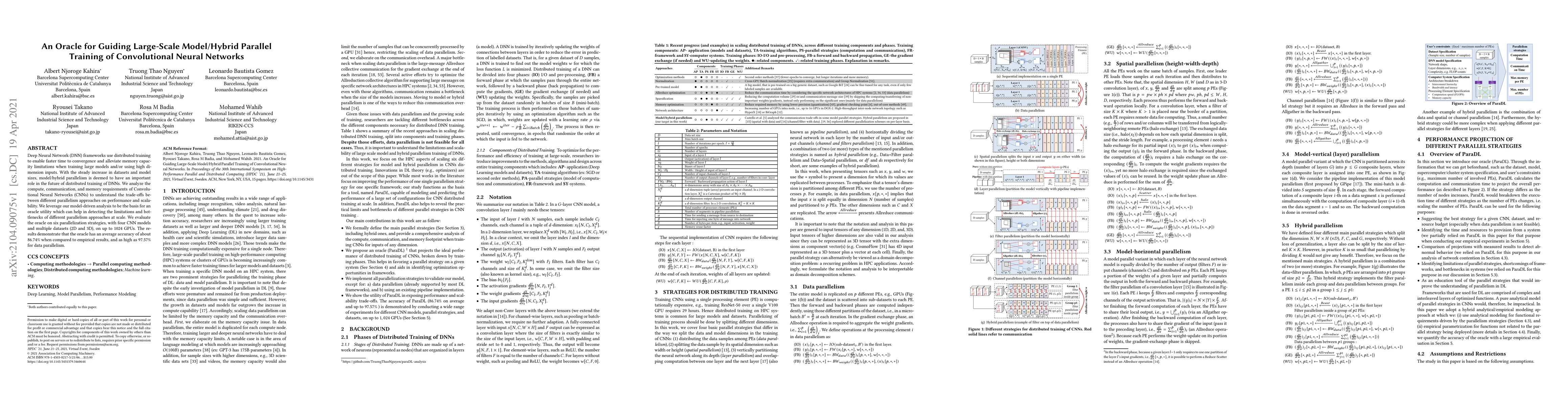 This paper presents an oracle utility to guide large-scale model/hybrid parallel training of Convolutional Neural Networks (CNNs) by analyzing compute, communication, and memory requirements. The oracle demonstrates high accuracy in predicting performance and scalability limitations across various parallelization strategies.