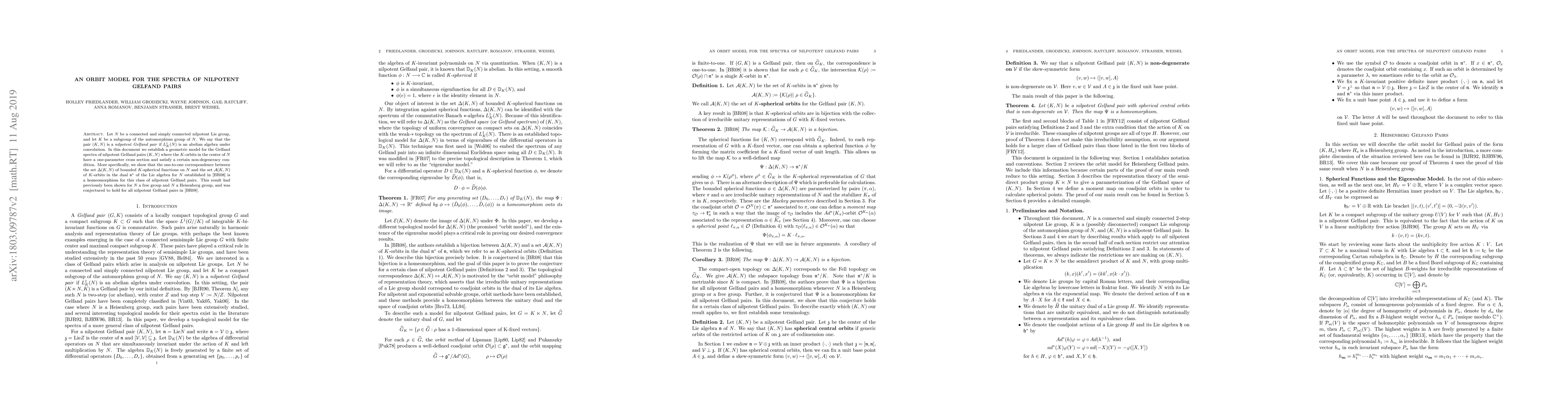 This paper establishes a geometric model for the spectra of nilpotent Gelfand pairs, showing that the correspondence between bounded $K$-spherical functions and $K$-orbits in the dual of the Lie algebra is a homeomorphism. This extends previous results for specific nilpotent groups to all such pairs under certain conditions.