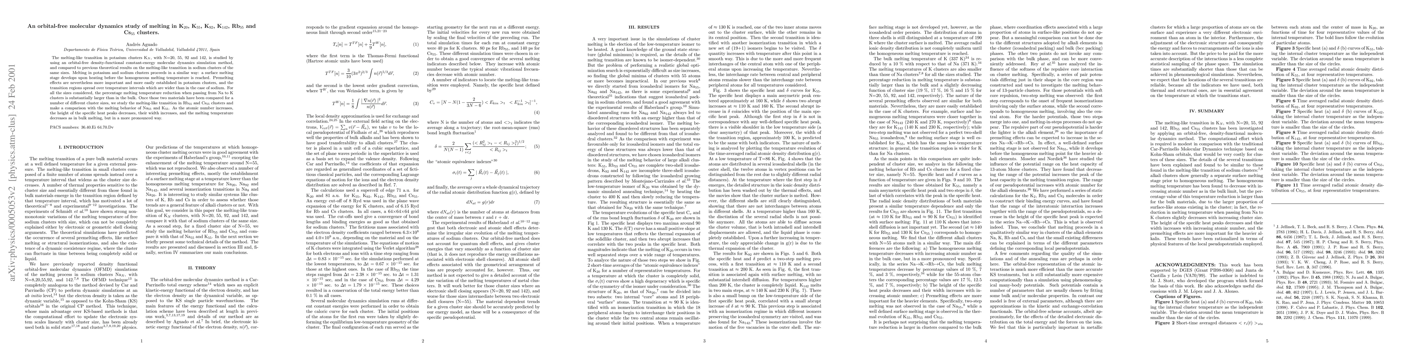 Researchers studied melting transitions in potassium and sodium clusters using an orbital-free molecular dynamics method, finding that melting temperatures decrease with atomic number and premelting effects are more pronounced in potassium clusters.