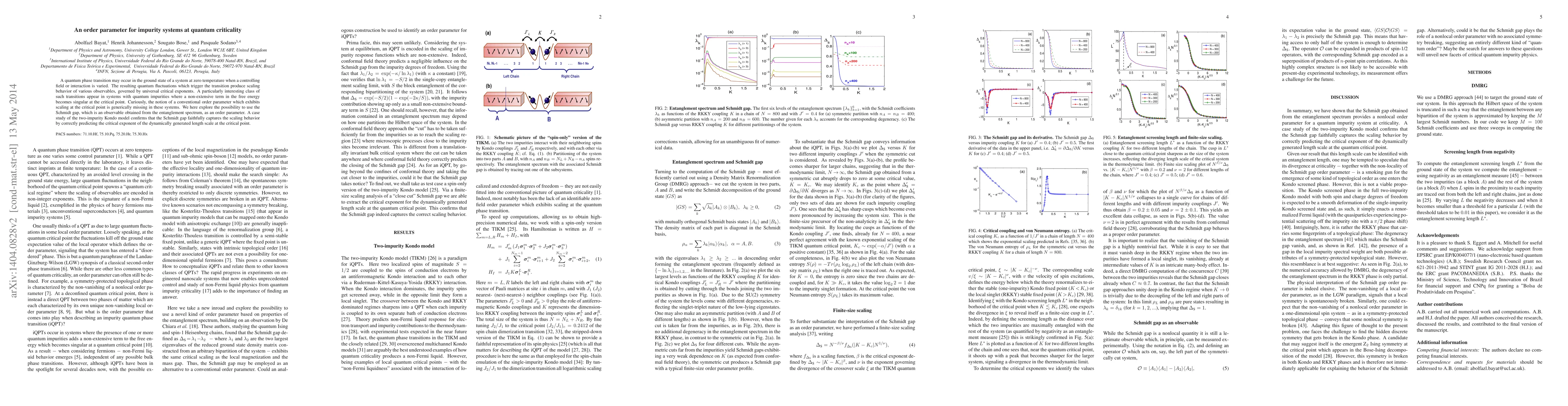 Researchers explore a new order parameter for quantum impurity systems at criticality, finding that the Schmidt gap captures scaling behavior in the two-impurity Kondo model.