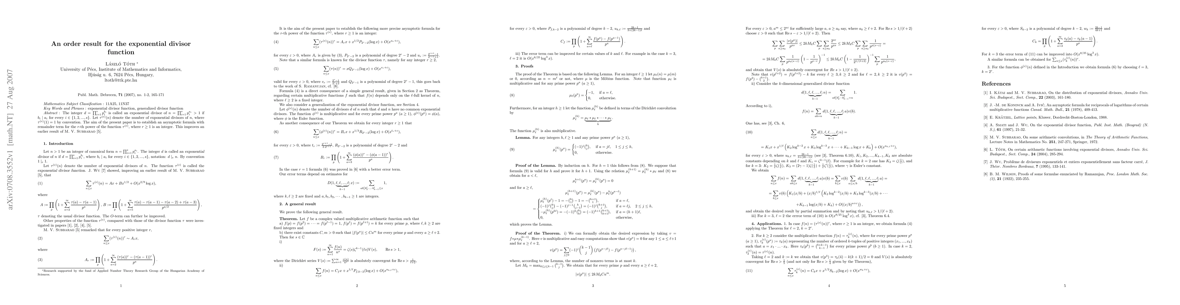 This paper establishes an asymptotic formula with remainder term for the number of exponential divisors of a given integer, improving an earlier result, and focuses on its key findings and implications.