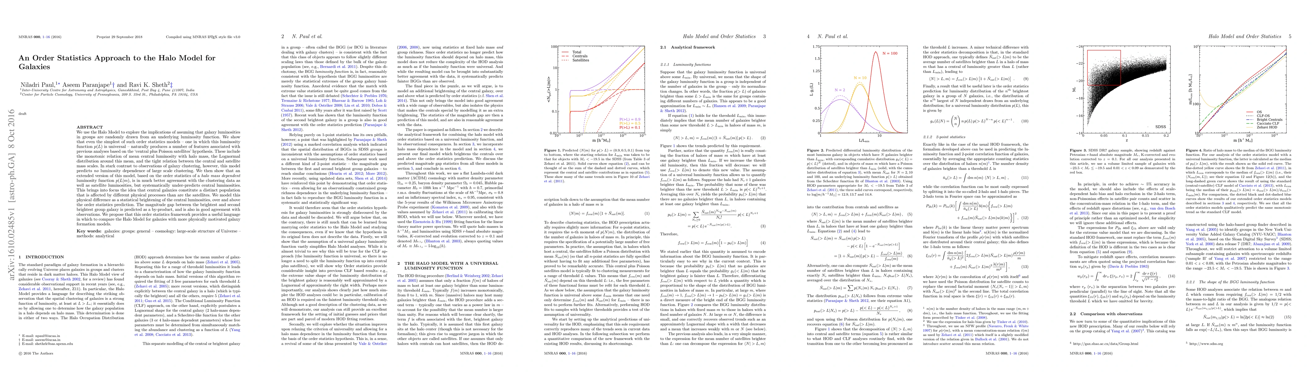 Researchers use an Order Statistics Approach to validate the Halo Model for Galaxies, finding that it naturally predicts certain features but disagrees with large-scale clustering data, leading to a proposed model that accounts for physical differences between central and satellite galaxies.
