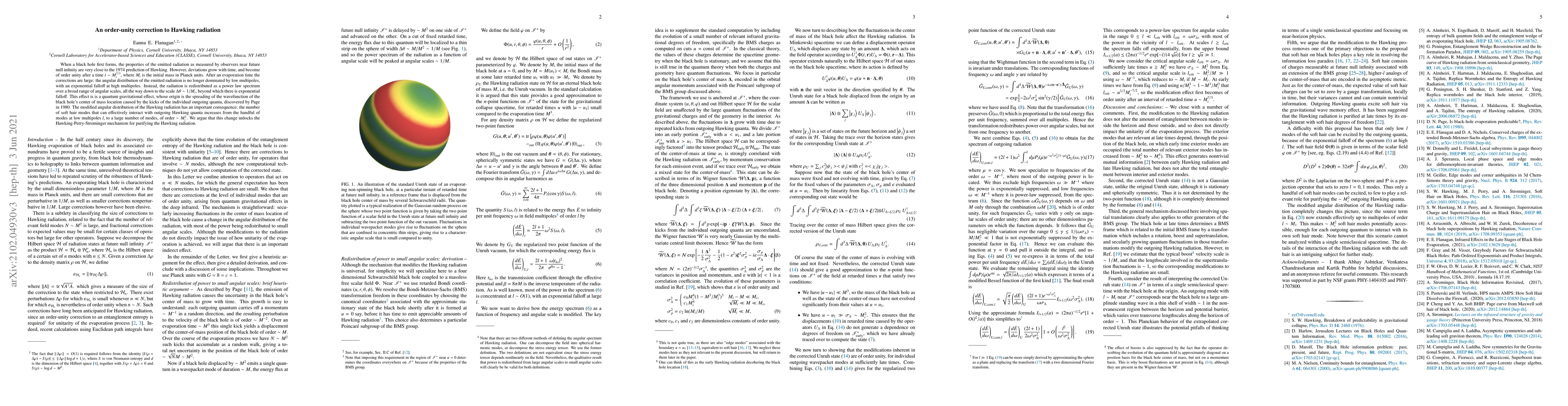 When a black hole first forms, the properties of the emitted radiation as measured by observers near future null infinity are very close to the 1974 prediction of Hawking. However, deviations grow with time, and become of order unity after a time $t \sim M_i^{7/3}$, where $M_i$ is the initial mass in Planck units. After an evaporation time the corrections are large: the angular distribution of the emitted radiation is no longer dominated by low multipoles, with an exponential fall off at high multipoles. Instead, the radiation is redistributed as a power law spectrum over a broad range of angular scales, all the way down to the scale $\Delta \theta \sim 1/M_i$, beyond which there is exponential falloff. This effect is is a quantum gravitational effect, whose origin is the spreading of the wavefunction of the black hole's center of mass location caused by the kicks of the individual outgoing quanta, discovered by Page in 1980. The modified angular distribution of the Hawking radiation has an important consequence: the number of soft hair modes that can effectively interact with outgoing Hawking quanta increases from the handful of modes at low multipoles $l$, to a large number of modes, of order $\sim M_i^2$. We argue that this change unlocks the Hawking-Perry-Strominger mechanism for purifying the Hawking radiation.