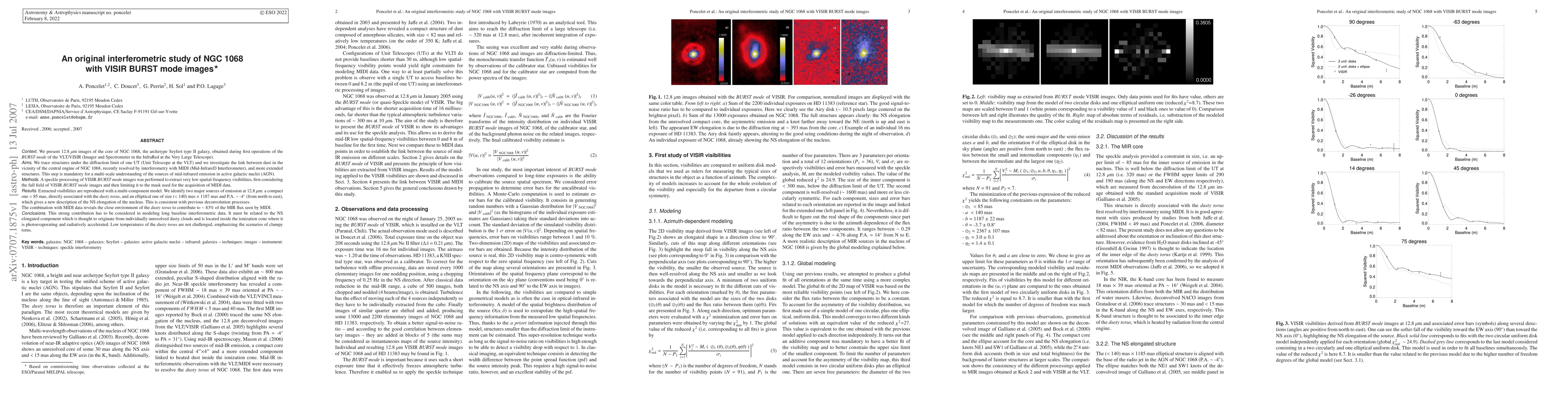 We present 12.8 microns images of the core of NGC 1068 obtained with the BURST mode of the VLT/VISIR. We trace structures under the diffraction limit of one UT and we investigate the link between dust in the vicinity of the central engine of NGC 1068, recently resolved by interferometry with MIDI, and more extended structures. This step is mandatory for a multi-scale understanding of the sources of mid-infrared emission in AGNs. A speckle processing of VISIR BURST mode images was performed to extract very low spatial-frequency visibilities, first considering the full field of VISIR BURST mode images and then limiting it to the mask used for the acquisition of MIDI data. Extracted visibilities are reproduced with a multi-component model. We identify two major sources of emission: one compact < 85 mas, associated with the dusty torus, and an elliptical one, (< 140) mas x 1187 mas at P.A.=-4 degrees from N to E. This is consistent with previous deconvolution processes. The combination with MIDI data reveals the close environment of the dusty torus to contribute to about 83 percent of the MIR flux seen by MIDI. This strong contribution has to be considered in modeling long baseline interferometric data. It must be related to the NS elongated component which is thought to originate from individually unresolved dusty clouds and is located inside the ionization cone. Low temperatures of the dusty torus are not challenged, emphasizing the scenarios of clumpy torus.