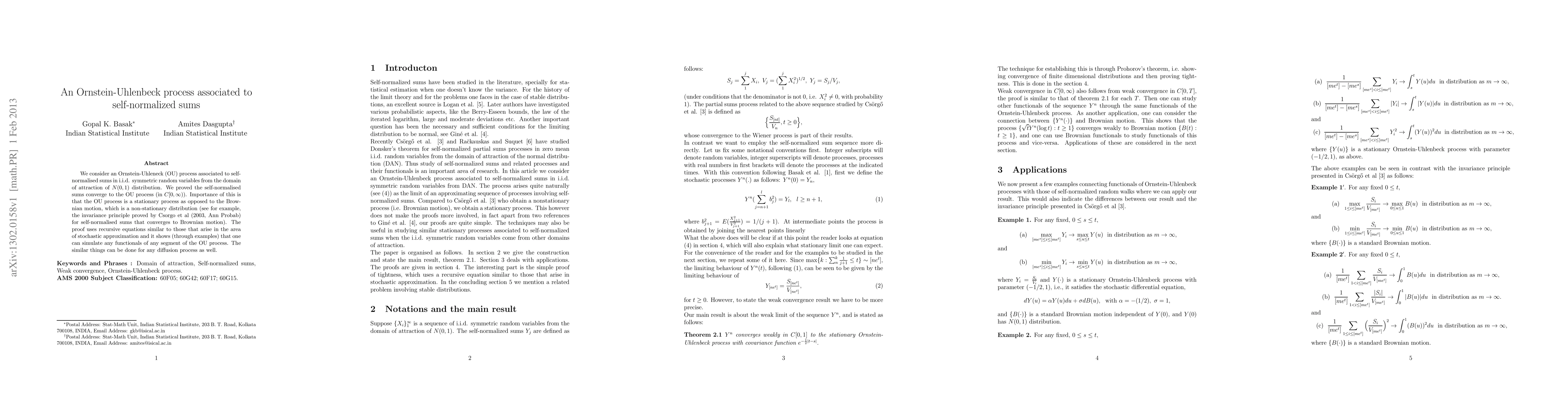 Researchers have discovered that self-normalized sums of i.i.d. random variables converge to a stationary Ornstein-Uhlenbeck process, offering a new perspective on the behavior of such sums.