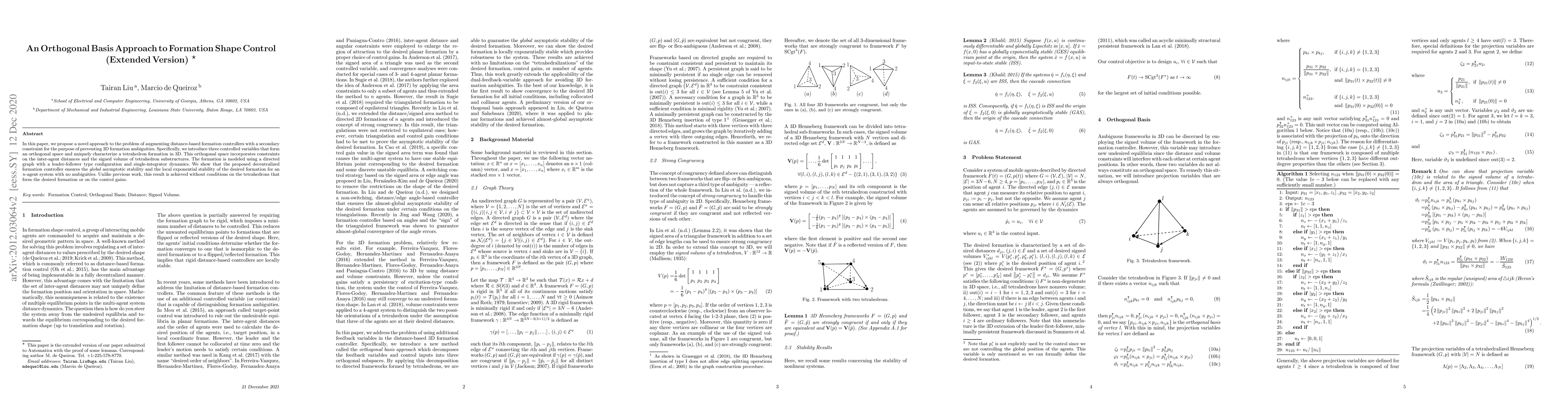 Researchers propose a novel approach to control formation shapes in autonomous systems, introducing an orthogonal basis that uniquely characterizes 3D tetrahedron formations and ensures global asymptotic stability without conditions on the desired shape or control gains.