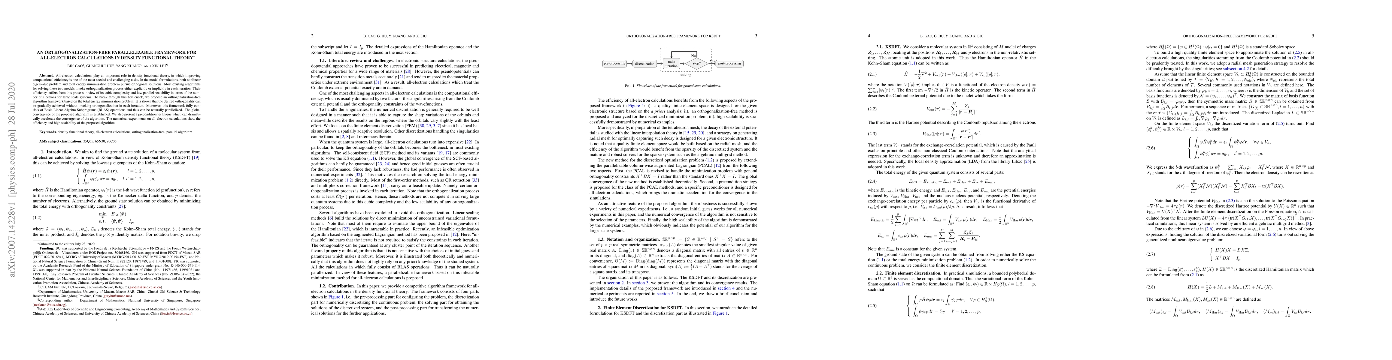 This paper proposes an orthogonalization-free parallelizable framework for all-electron calculations in density functional theory, achieving desired orthogonality without iterative orthogonalization. The framework utilizes BLAS operations for natural parallelization and includes a precondition technique to accelerate convergence, demonstrating efficiency and scalability in numerical experiments.
