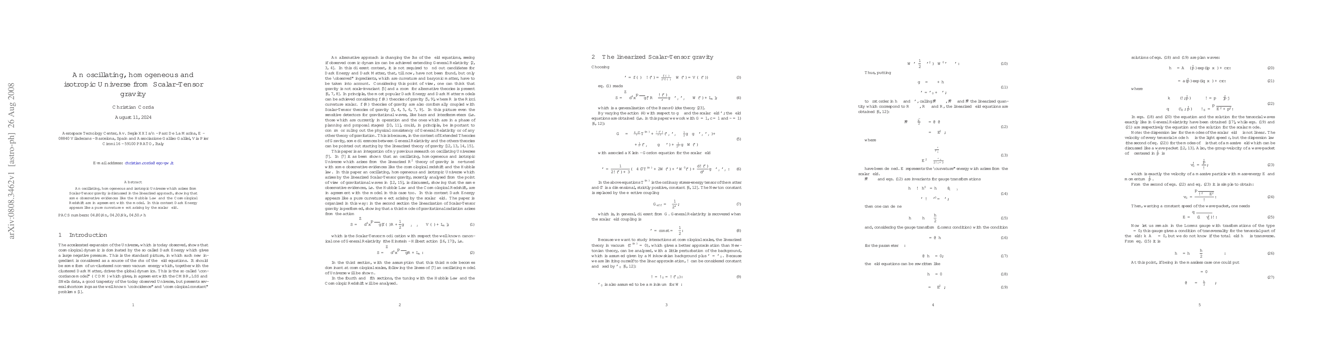 This paper explores an oscillating, homogeneous, and isotropic universe from Scalar-Tensor gravity, demonstrating that observational evidence such as the Hubble Law and Cosmological Redshift align with the model. Dark Energy is presented as a curvature effect generated by the scalar field.