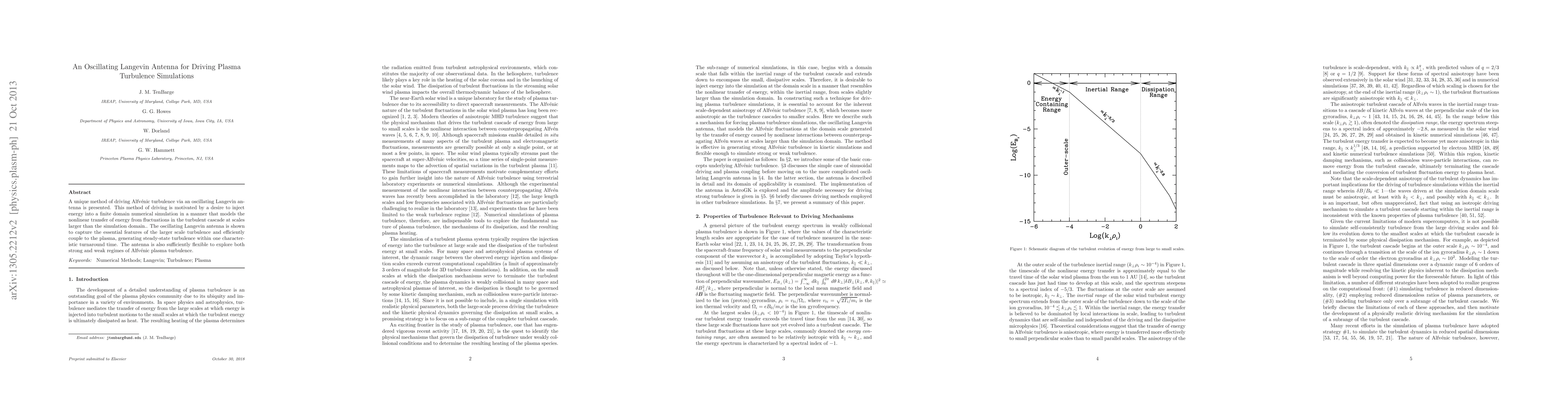 Researchers developed an oscillating Langevin antenna to drive plasma turbulence in simulations, effectively injecting energy into a domain and modeling nonlinear turbulence transfer. The antenna efficiently couples to plasma, generating steady-state turbulence within one characteristic turnaround time.