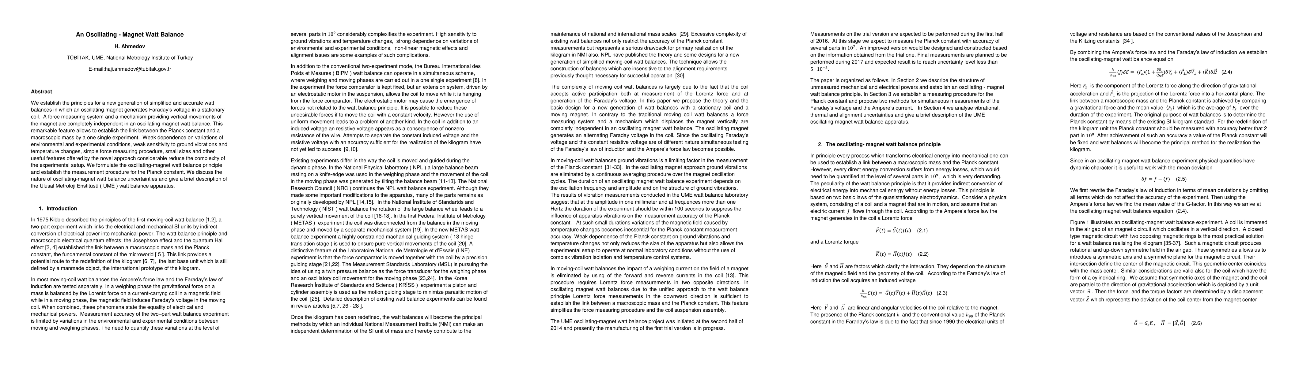 Researchers developed an oscillating magnet watt balance to measure the Planck constant with reduced complexity and increased accuracy. This novel approach enables a single experiment to link the Planck constant to macroscopic mass.