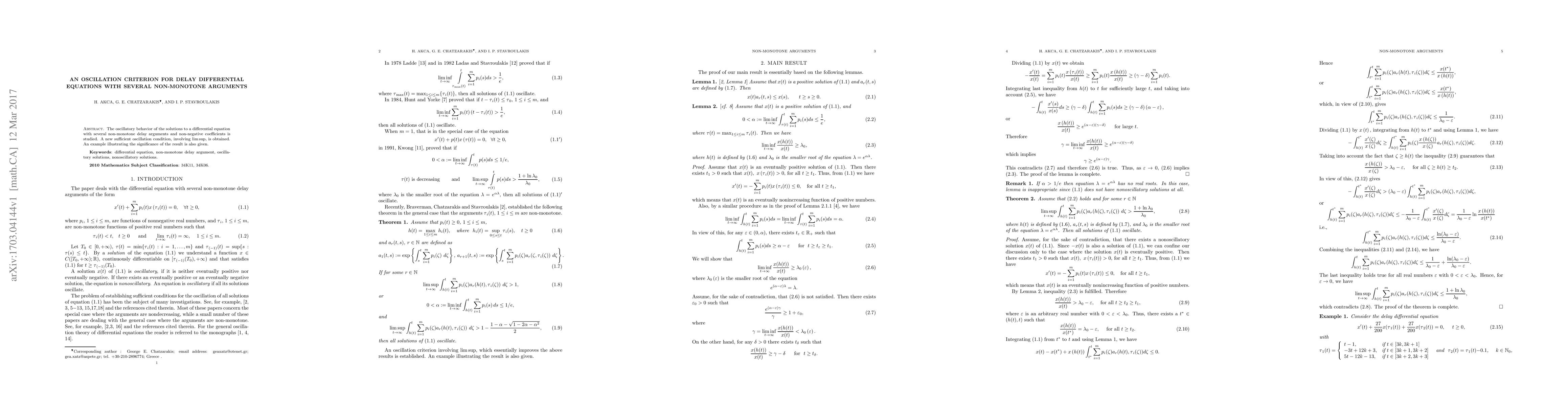 The oscillatory behavior of the solutions to a differential equation with several non-monotone delay arguments and non-negative coefficients is studied. A new sufficient oscillation condition, involving lim sup, is obtained. An example illustrating the significance of the result is also given.