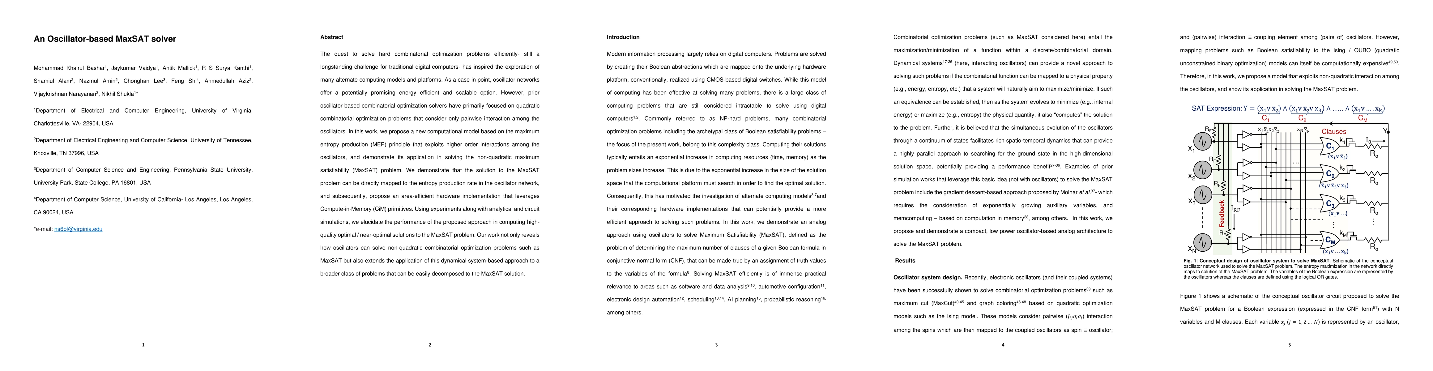 This paper proposes a novel oscillator-based computational model leveraging the maximum entropy production principle to solve non-quadratic MaxSAT problems efficiently. The approach exploits higher-order interactions among oscillators and demonstrates an area-efficient hardware implementation using Compute-in-Memory primitives, achieving high-quality optimal solutions.