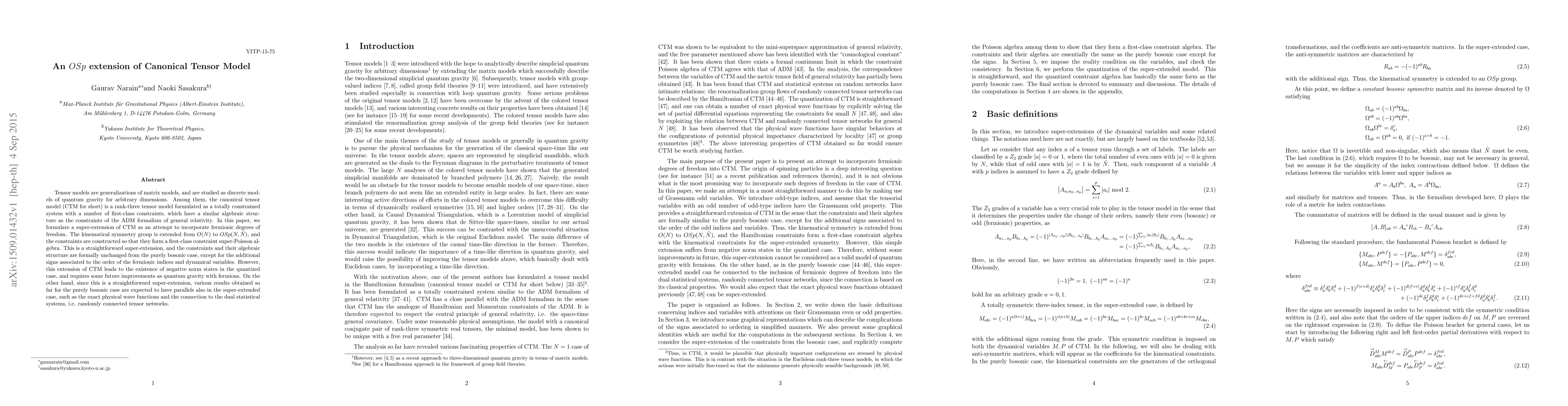 Tensor models are generalizations of matrix models, and are studied as discrete models of quantum gravity for arbitrary dimensions. Among them, the canonical tensor model (CTM for short) is a rank-three tensor model formulated as a totally constrained system with a number of first-class constraints, which have a similar algebraic structure as the constraints of the ADM formalism of general relativity. In this paper, we formulate a super-extension of CTM as an attempt to incorporate fermionic degrees of freedom. The kinematical symmetry group is extended from $O(N)$ to $OSp(N,\tilde N)$, and the constraints are constructed so that they form a first-class constraint super-Poisson algebra. This is a straightforward super-extension, and the constraints and their algebraic structure are formally unchanged from the purely bosonic case, except for the additional signs associated to the order of the fermionic indices and dynamical variables. However, this extension of CTM leads to the existence of negative norm states in the quantized case, and requires some future improvements as quantum gravity with fermions. On the other hand, since this is a straightforward super-extension, various results obtained so far for the purely bosonic case are expected to have parallels also in the super-extended case, such as the exact physical wave functions and the connection to the dual statistical systems, i.e. randomly connected tensor networks.