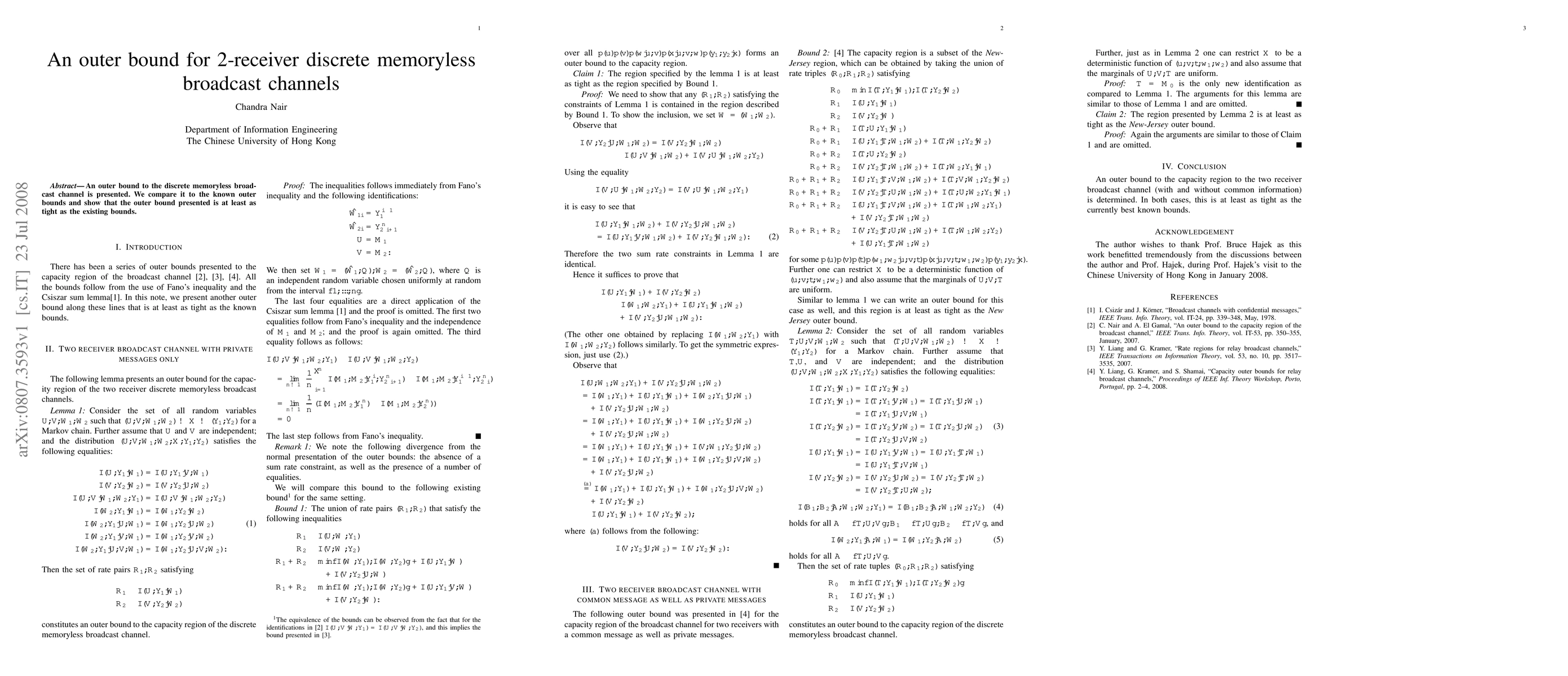 This paper introduces a new outer bound for the two-receiver discrete memoryless broadcast channel, demonstrating its competitiveness by proving it's at least as tight as existing bounds.