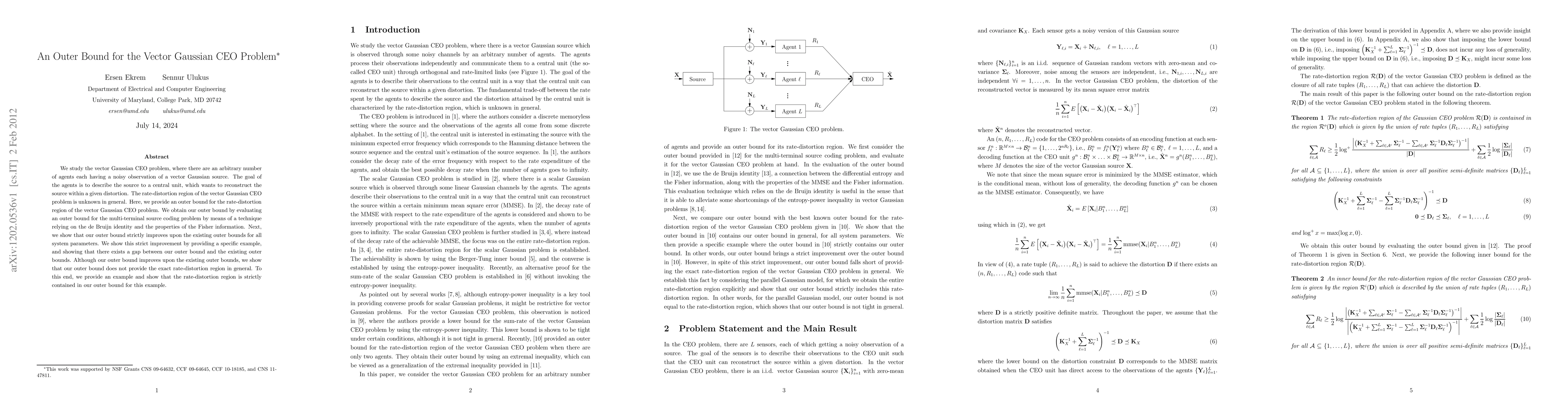 Researchers found an outer bound for the rate-distortion region of a vector Gaussian CEO problem, improving upon existing bounds with strict examples, but revealing that their bound does not always achieve the exact rate-distortion region.