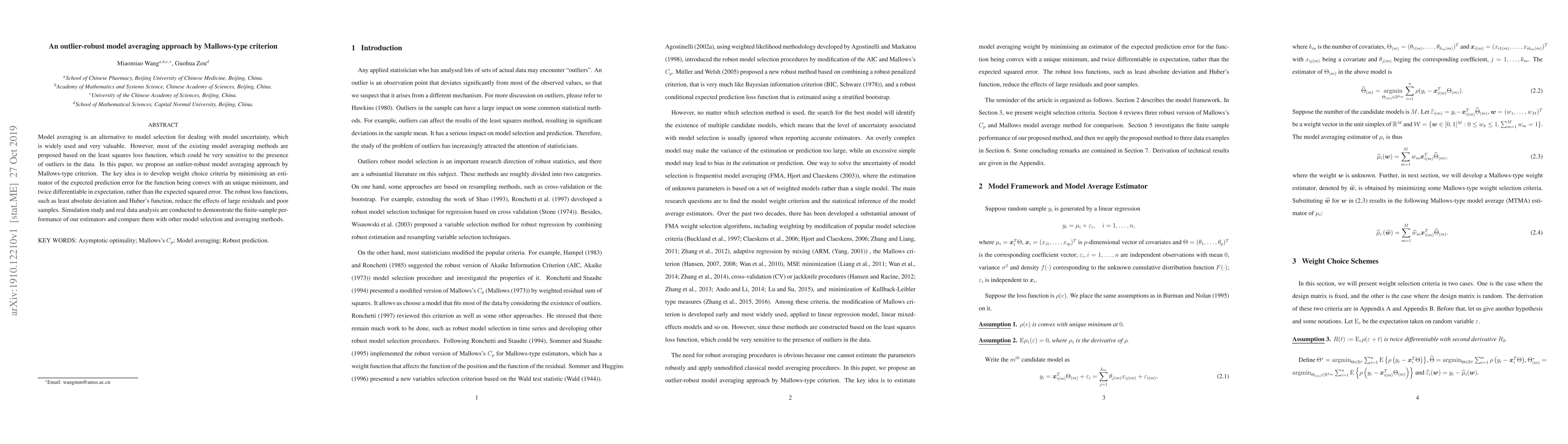 A new model averaging approach is proposed to reduce sensitivity to outliers, using a Mallows-type criterion that minimizes expected prediction error for convex functions with unique minima. This method performs better than existing methods in simulation studies and real data analysis.