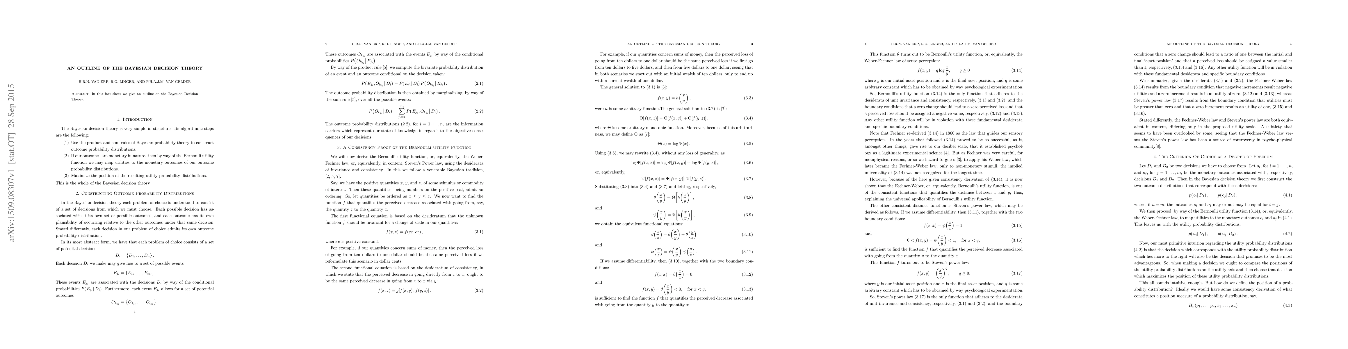 In this paper we give an outline on the Bayesian Decision Theory.