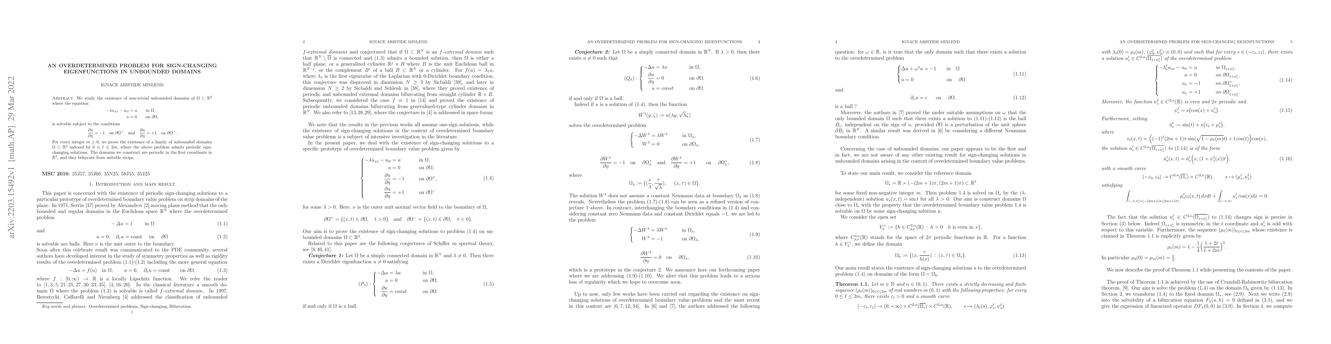 This paper investigates the existence of unbounded domains in $\mathbb{R}^2$ where a specific partial differential equation admits periodic sign-changing eigenfunctions. The authors prove the existence of such domains for any integer $m\geq 0$, showing that these domains are periodic and bifurcate from suitable strips.